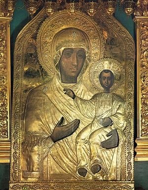 The Smolensk “Hodēgḗtria” Icon of the Theotokos, or “She who leads the way,” was, according to Church Tradition, painted by the holy Evangelist Luke during the earthly life of the Most Holy Theotokos. The holy hierarch Demetrius of Rostov suggests that this icon was painted at the request of Theophilus, the prefect of Antioch. From Antioch the holy image was transferred to Jerusalem. From there the empress Eudokia, the spouse of Arcadius, gave it at Constantinople to Pulcheria, the sister of the emperor, who put the holy icon in the Blachernae church.